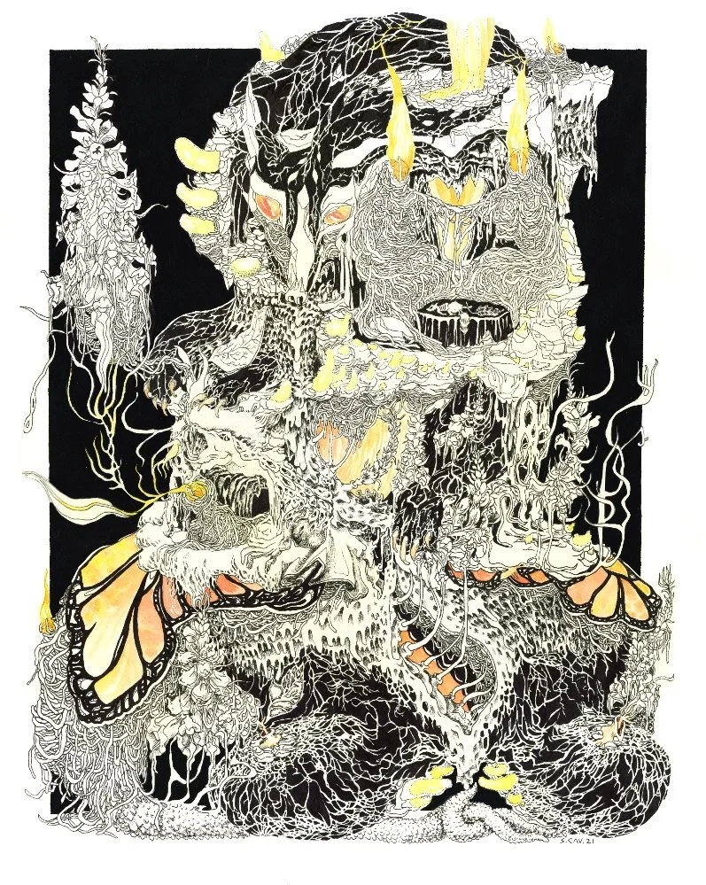 Fruit of the Void, 2020, 15"x11", ink and watercolor on paper